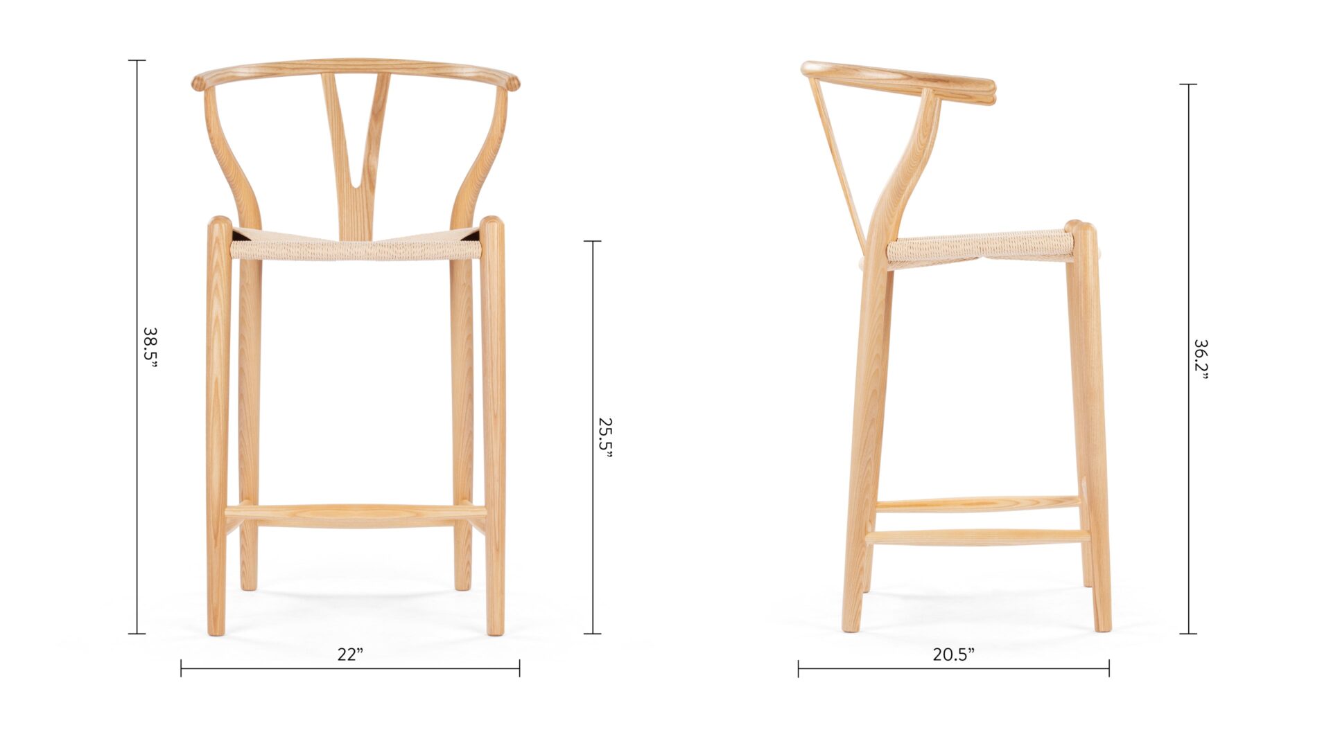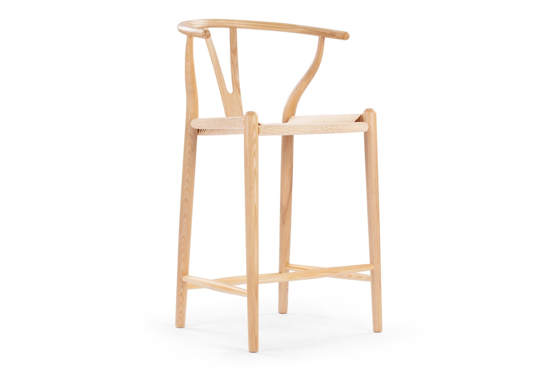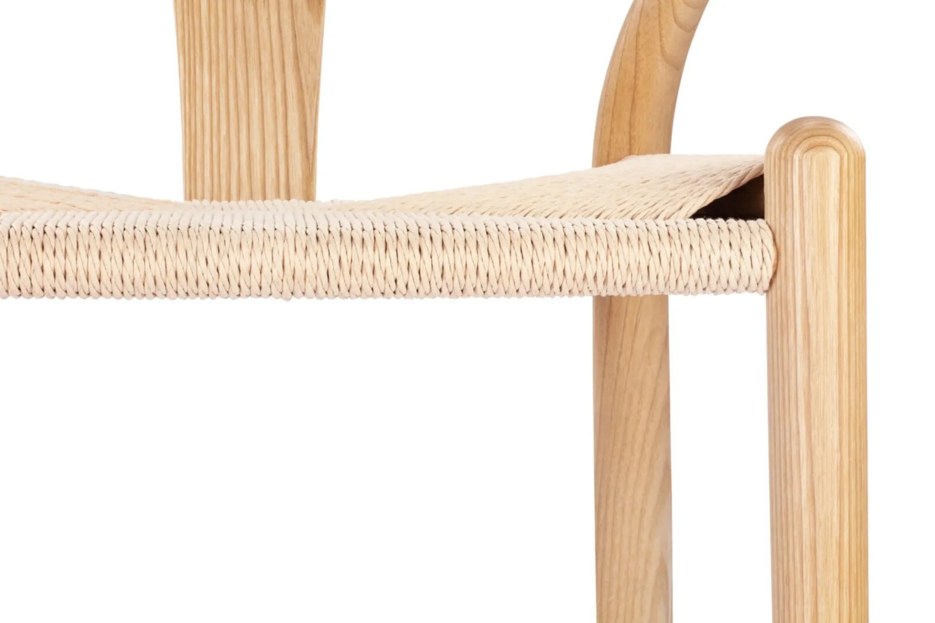 Indulge in the timeless charm of the Wish Counter Stool, a tribute to mid-century Danish design. Featuring a distinctive two-prong backrest and handwoven paper-cord seat, this stool resonates elegance and functionality. Crafted with a sturdy yet lightweight ash frame, it effortlessly blends minimalist aesthetics with Danish flair, offering a stylish and versatile addition to any space.
