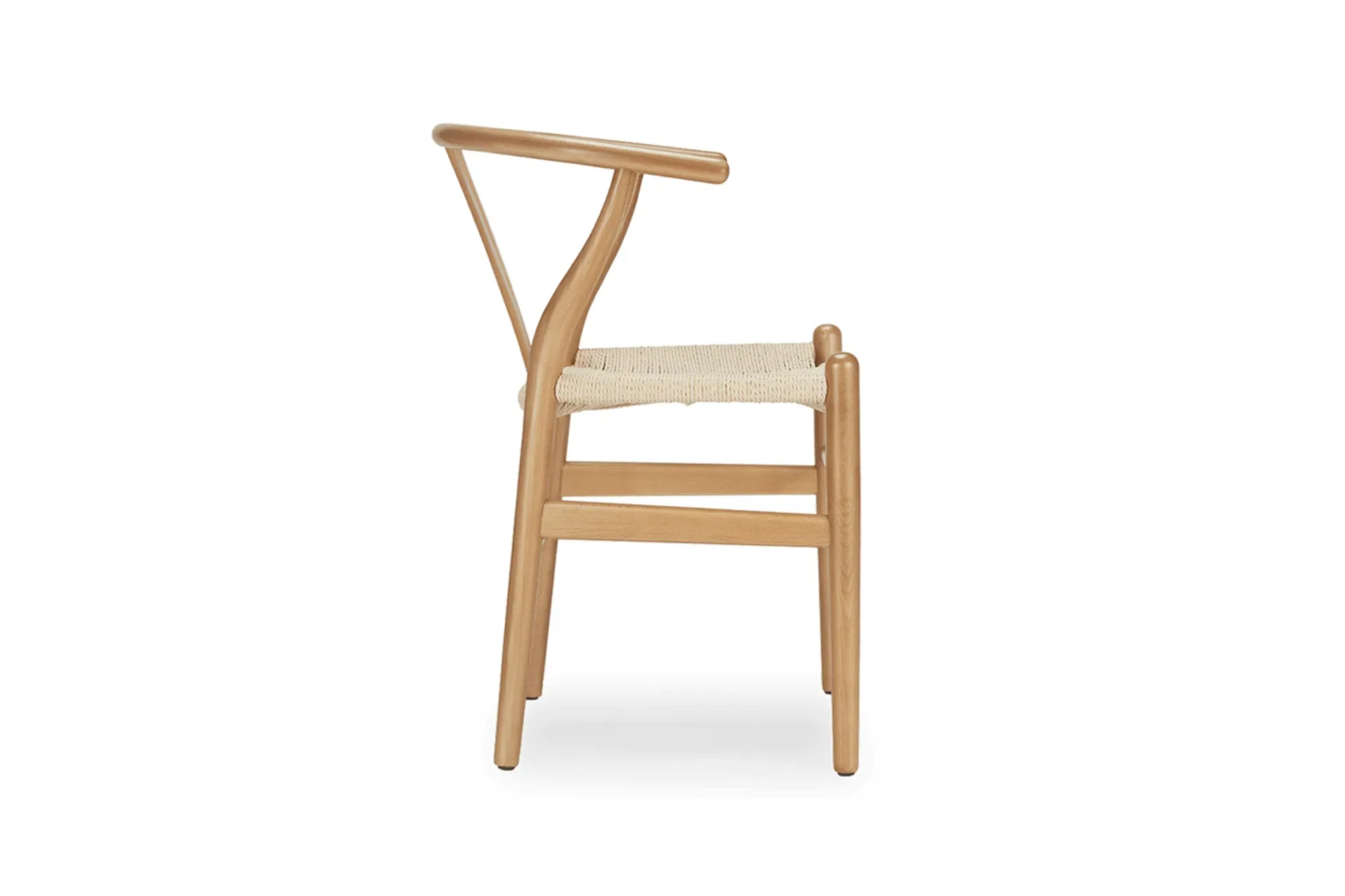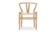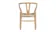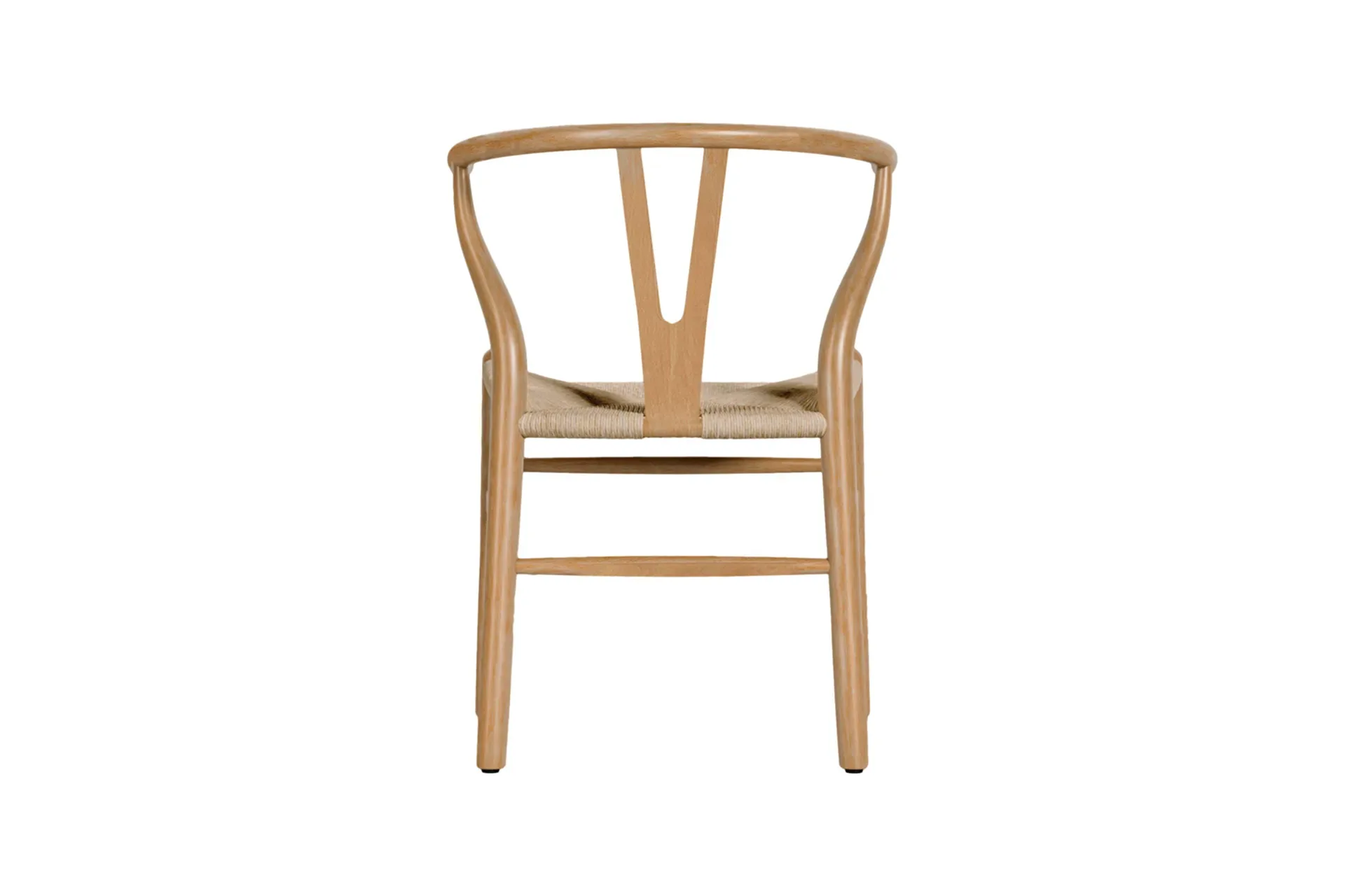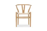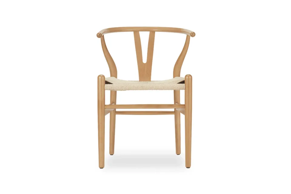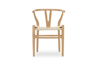 The Wish Chair, inspired by world-renowned Wishbone chair, exemplifies the iconic mid-century Danish design known for its unique back-rest support shape. This chair's design represents a superb example of elegant simplicity. Featuring curved back legs that gradually taper to connect with the back rail, its silhouette continues to captivate enthusiasts of the design. The Wish Chair is a minimalist's dream, boasting a lightweight yet sturdy and sophisticated frame paired with a comfortable paper-cord seat.