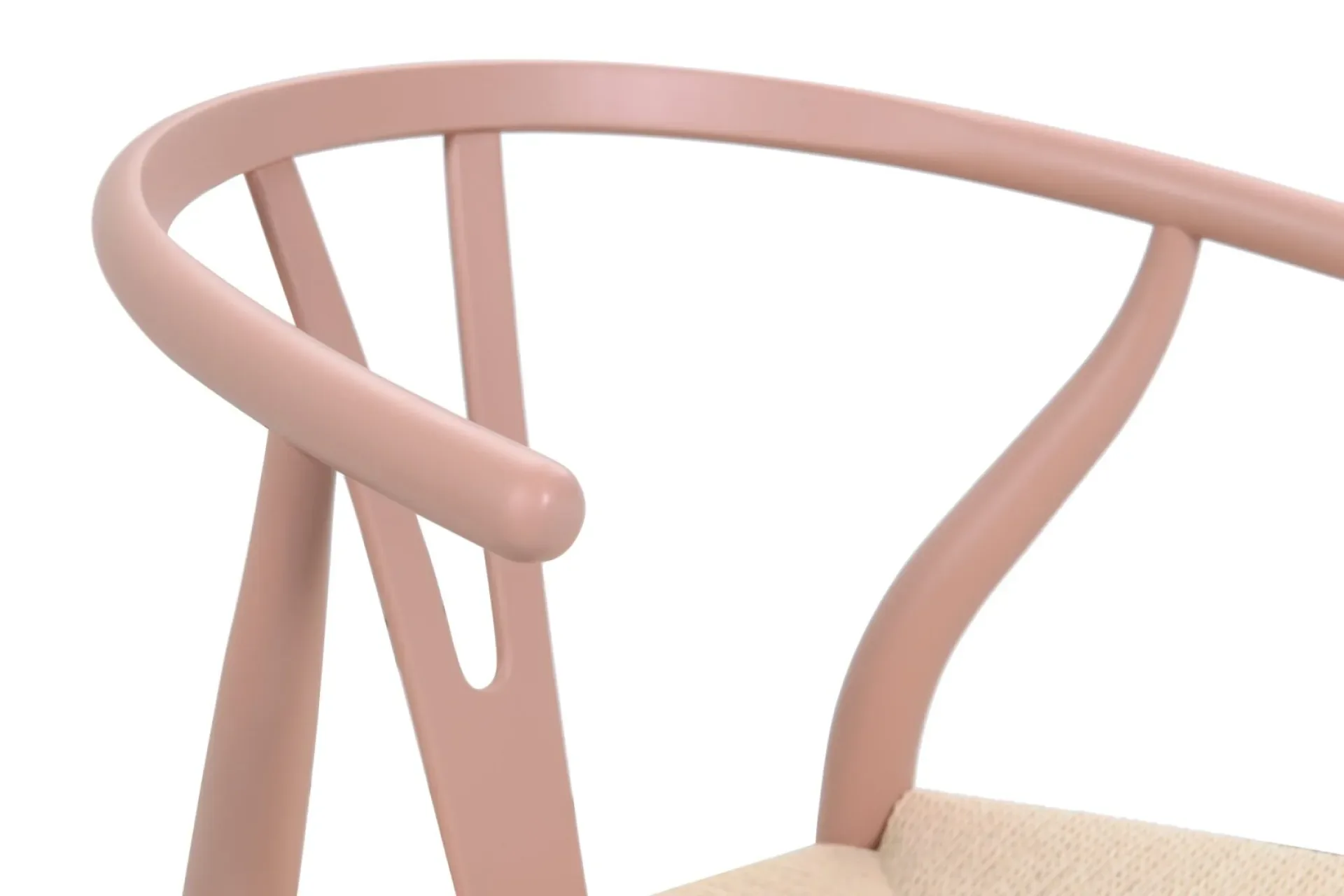 Discover the sleek and iconic Wish Chair, embodying the timeless mid-century Danish design with a unique back-rest shape. Effortlessly blending elegant simplicity with a sophisticated pink paper-cord seat, this minimalist dream chair boasts a lightweight yet sturdy frame. Elevate any space with this versatile and exquisitely crafted seating option, ideal for both residential and commercial settings.
