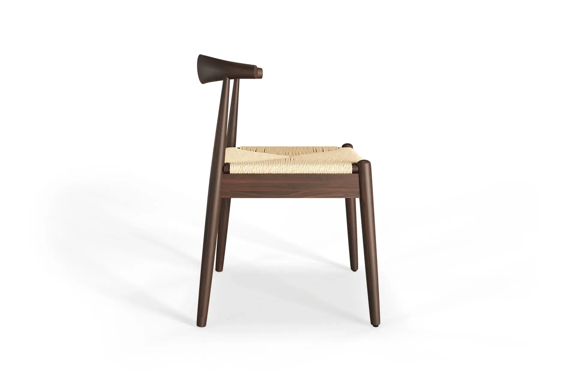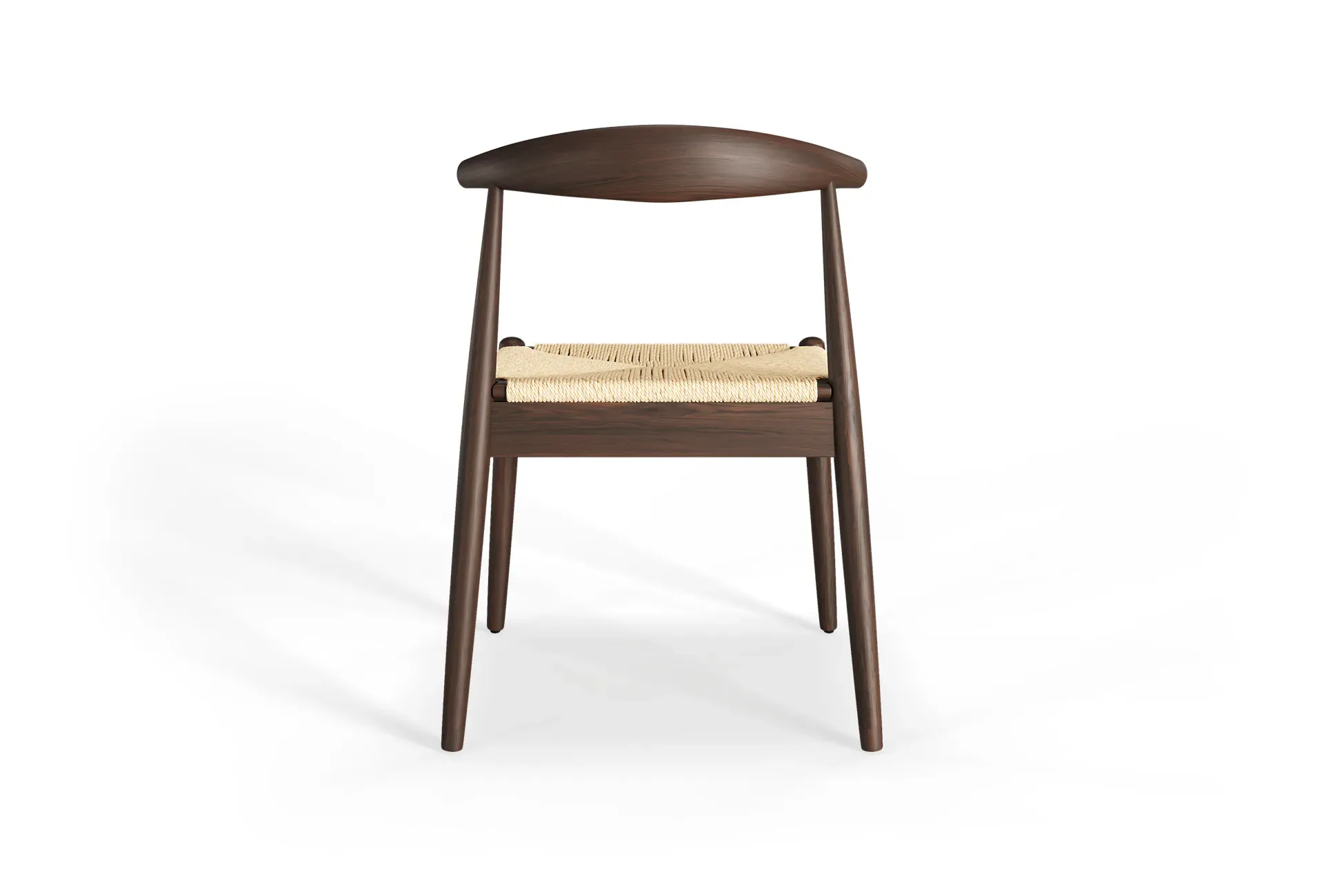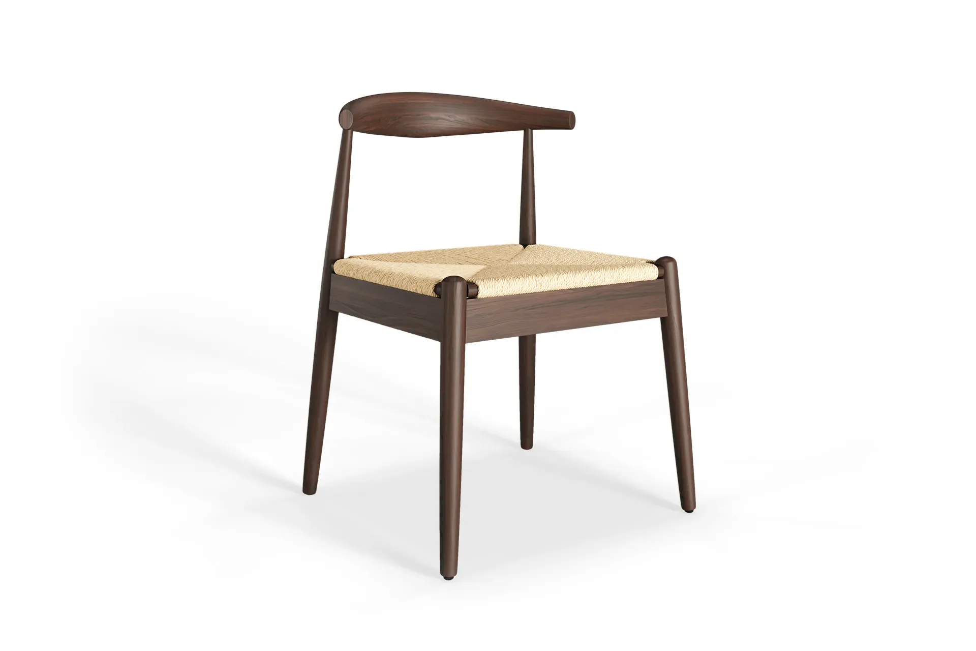 The Torsten Dining Chair in walnut combines rich wood tones with a natural woven seat and backrest. Its elegant contrast and sturdy frame bring warmth and sophistication, making every meal a refined, inviting experience.