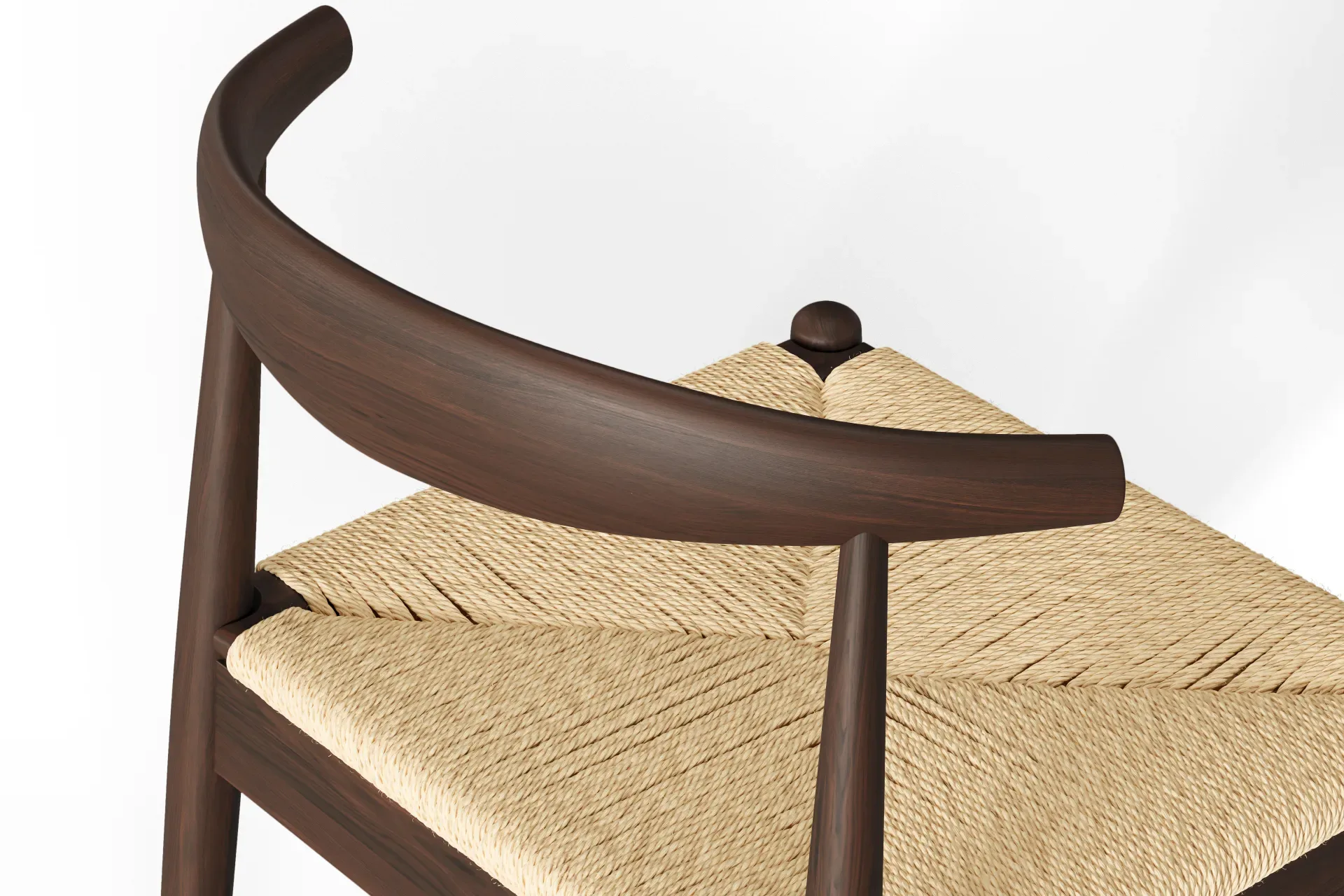 The Torsten Dining Chair in walnut combines deep wood tones with a natural cord seat for a look of refined warmth. Its elegant form and timeless materials evoke balance and comfort, making it a perfect choice for creating cozy, sophisticated spaces for dining and conversation.