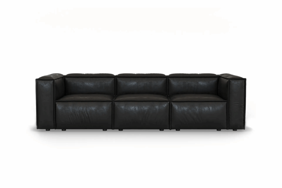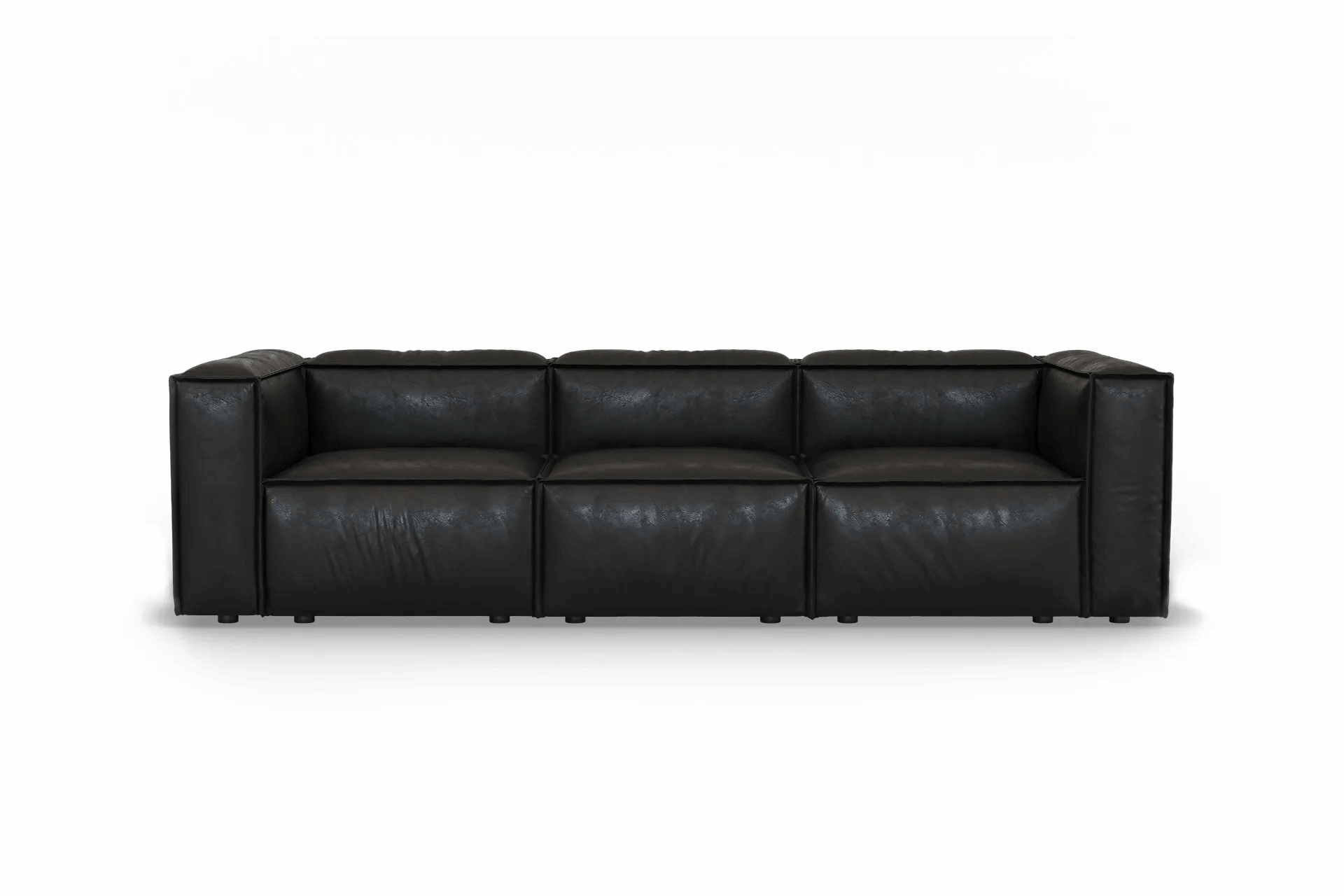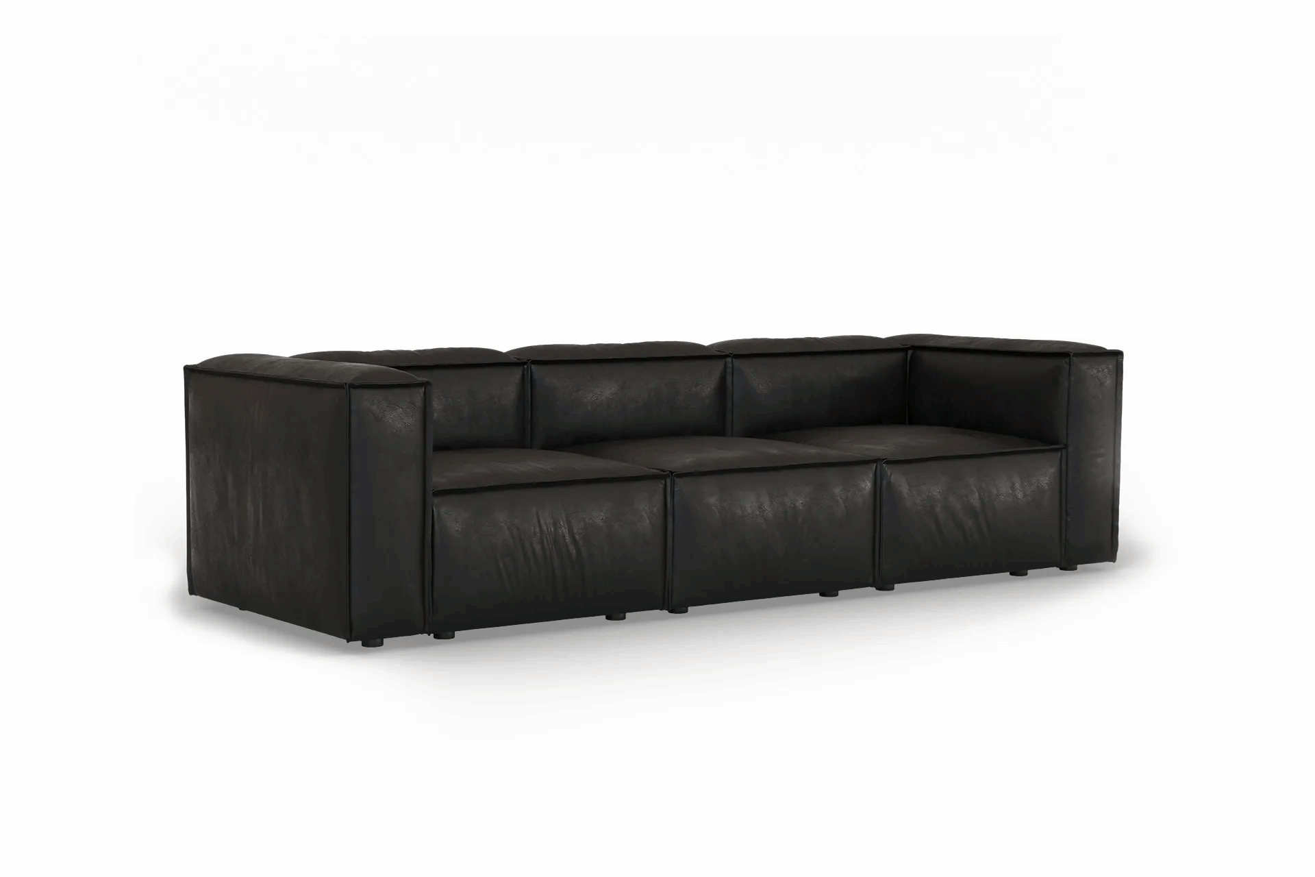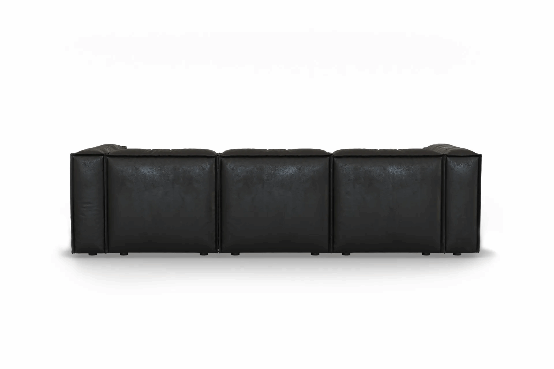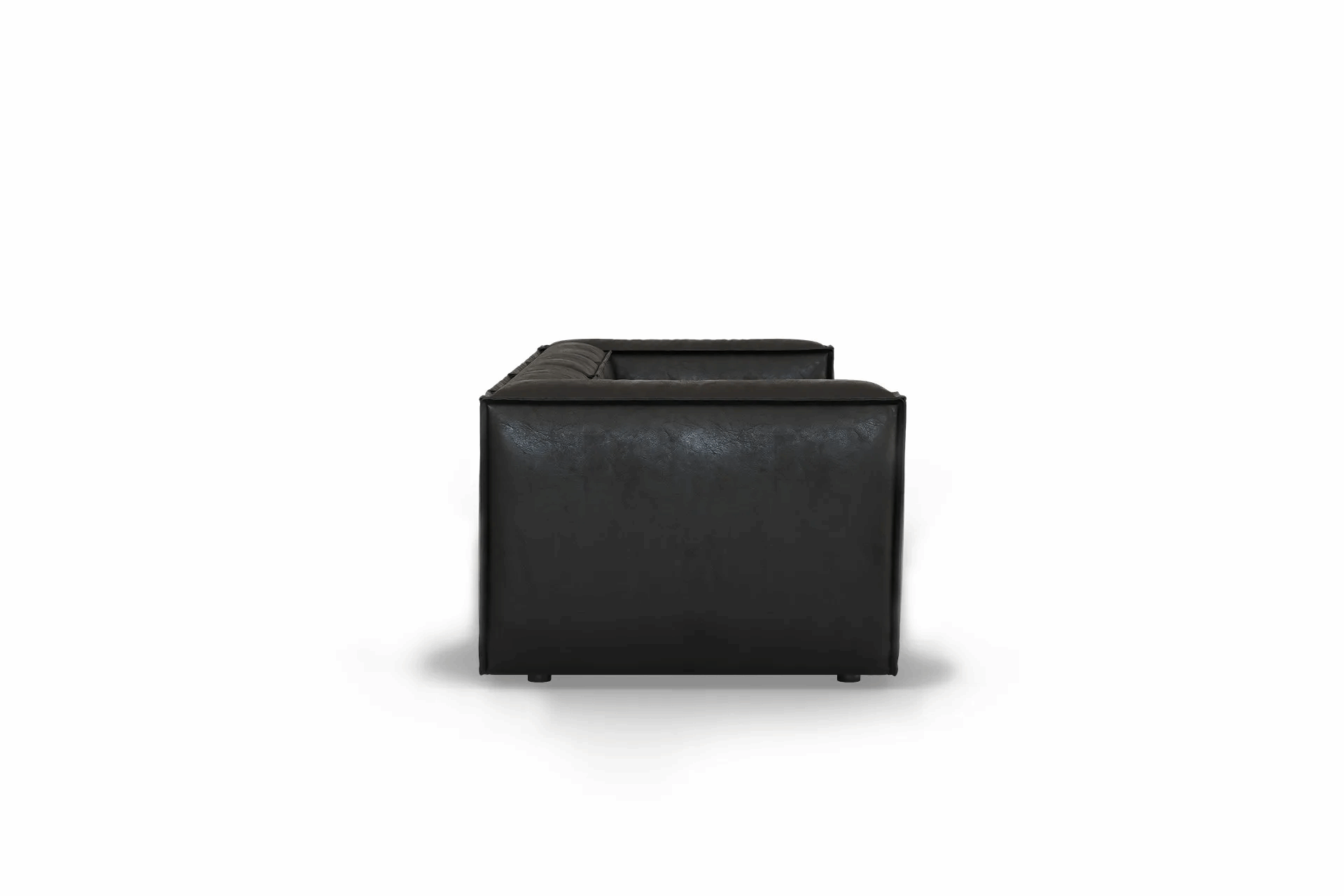 The Vibeke Three Seater in black vegan leather combines modern minimalism with enduring comfort. A striking piece that adds quiet strength to any space.