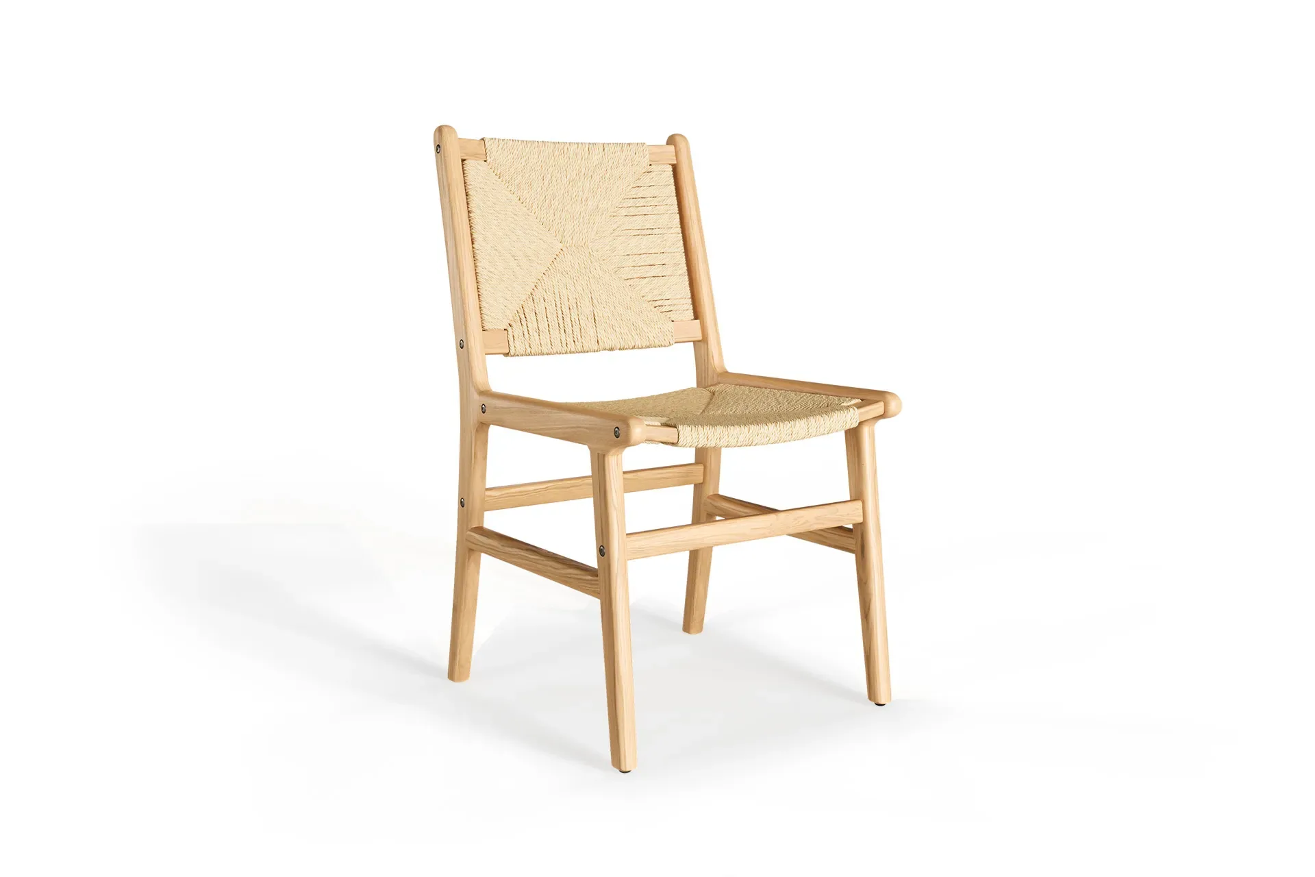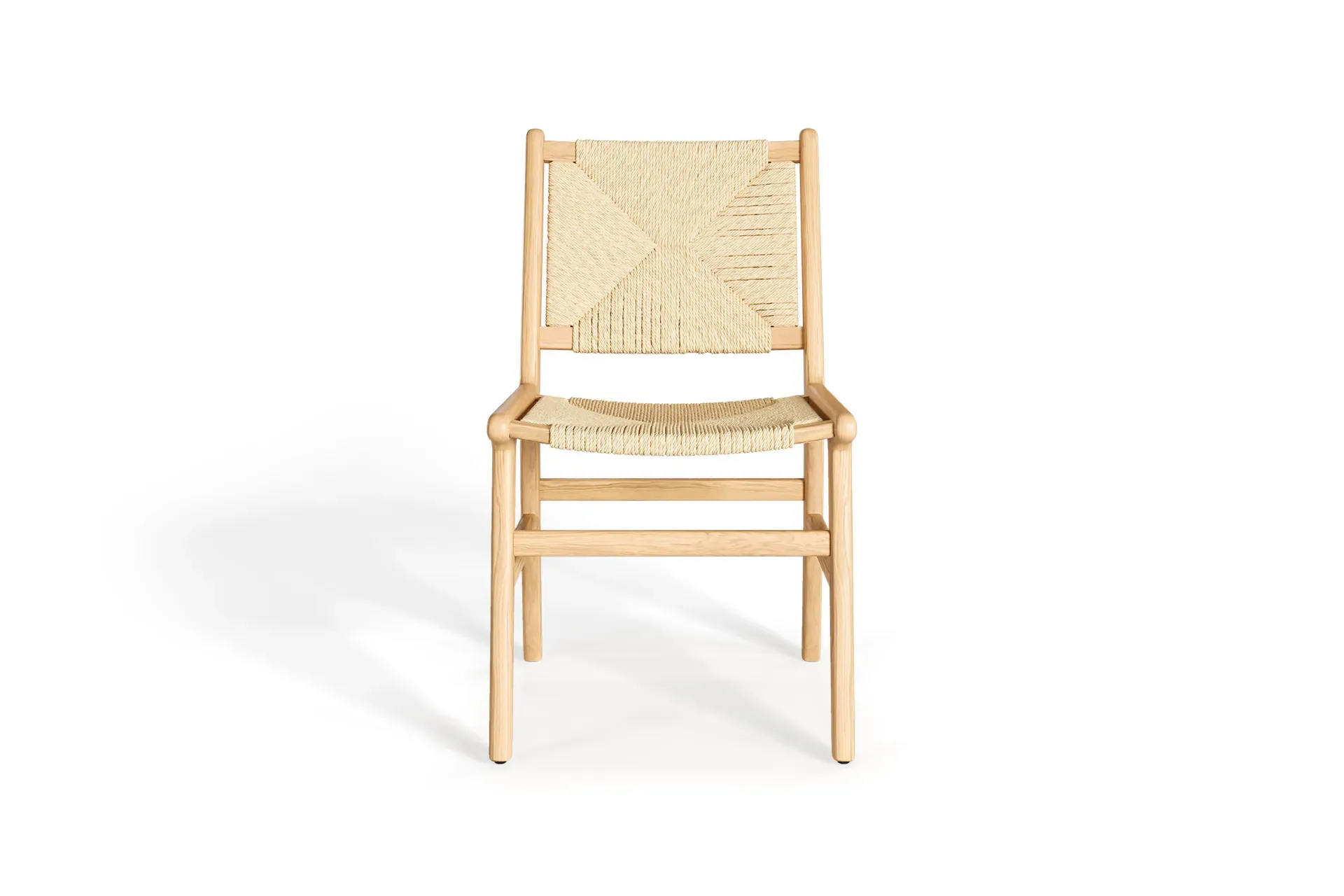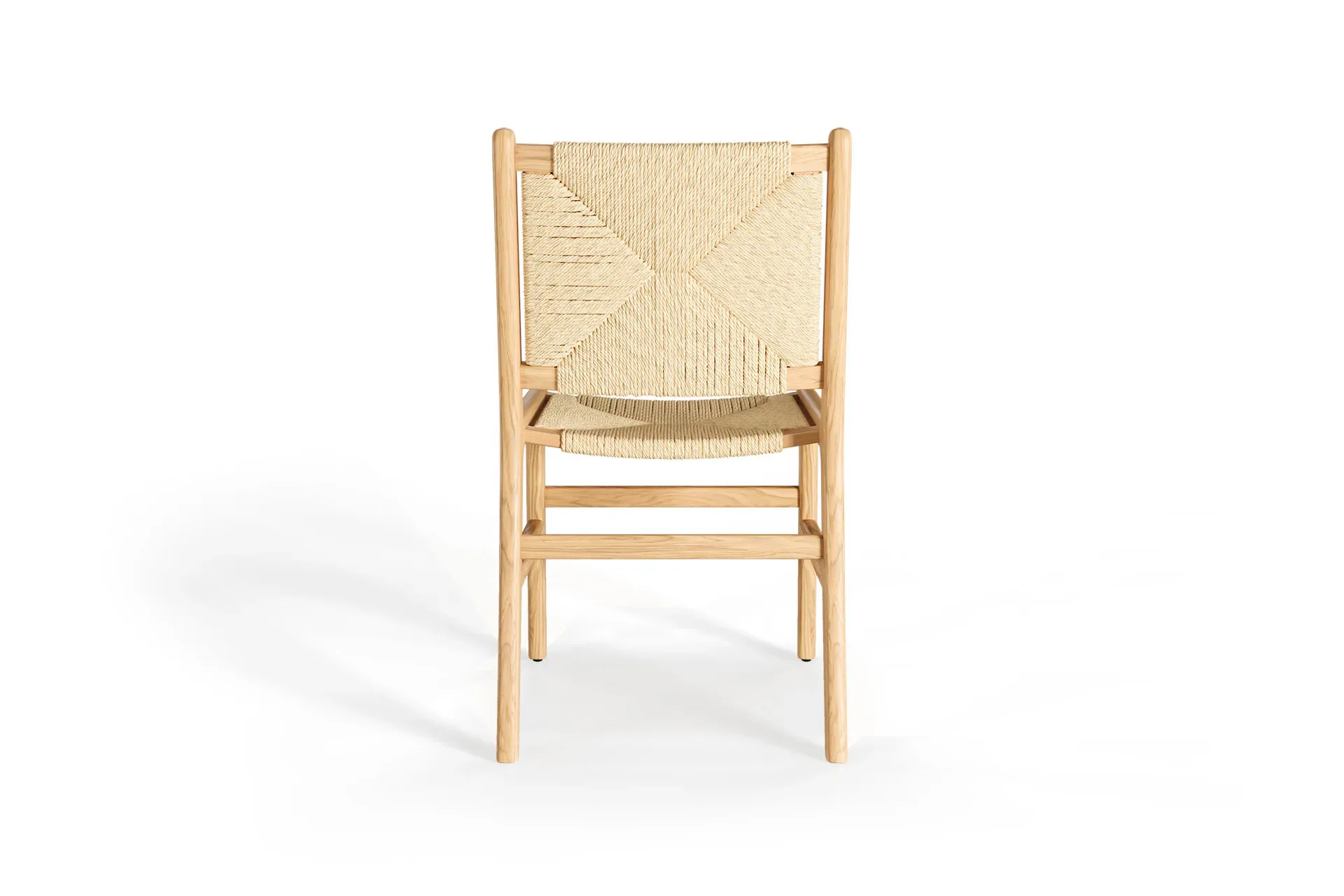 Crafted from solid oak and handwoven papercord, the Winona Dining Chair brings warmth and texture to any dining space. Its light wood tones and airy design reflect Scandinavian simplicity—balancing craftsmanship, comfort, and timeless style in every detail.