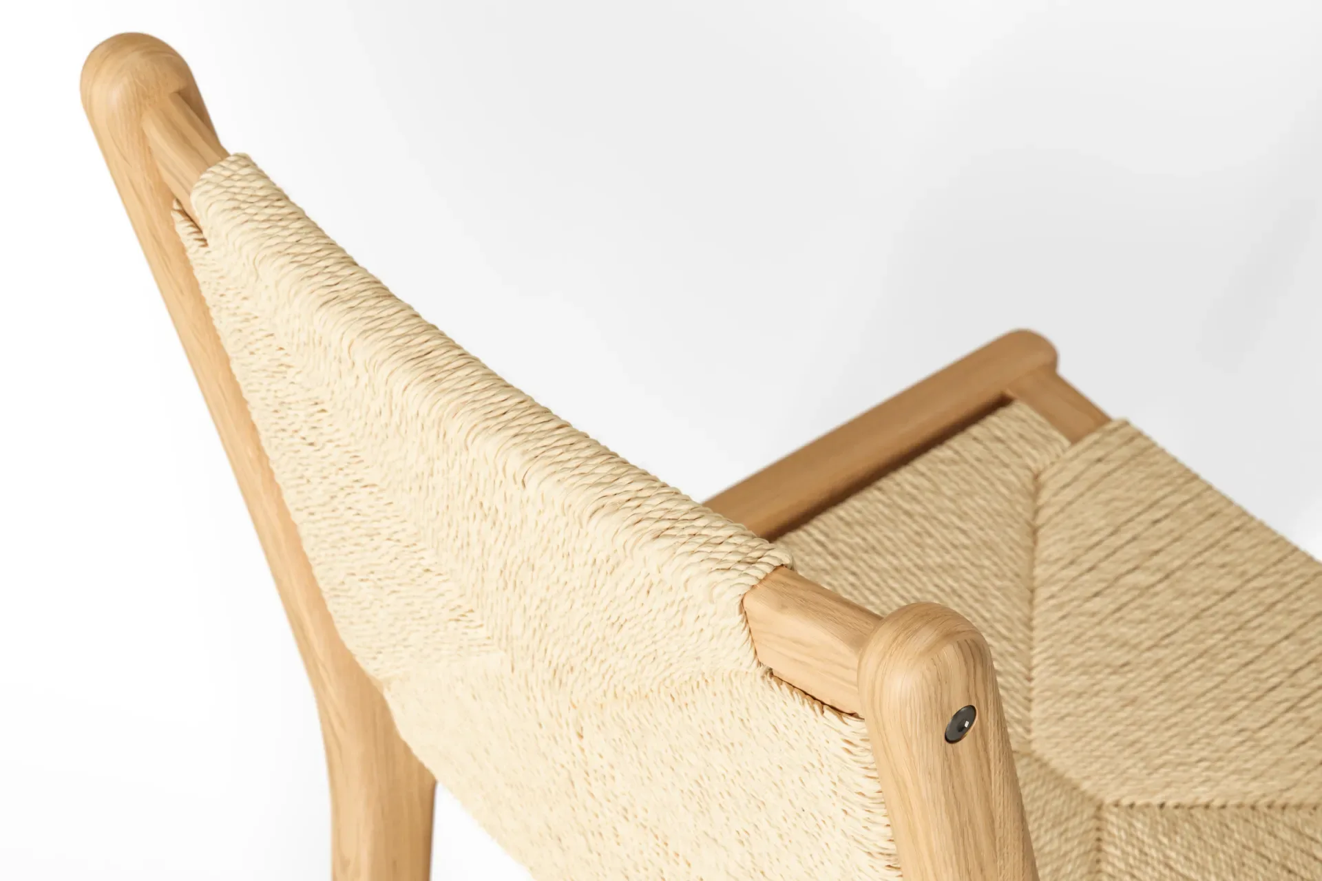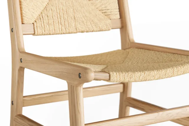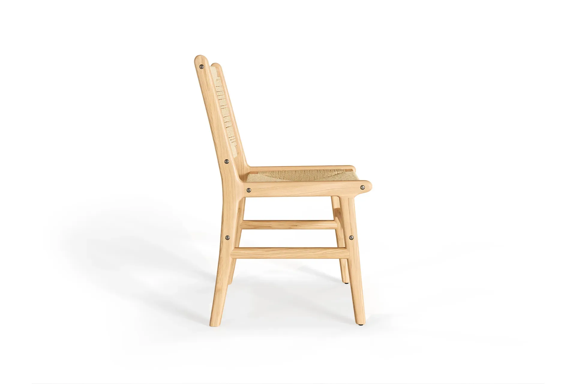 Crafted from solid oak and handwoven papercord, the Winona Dining Chair brings warmth and texture to any dining space. Its light wood tones and airy design reflect Scandinavian simplicity—balancing craftsmanship, comfort, and timeless style in every detail.