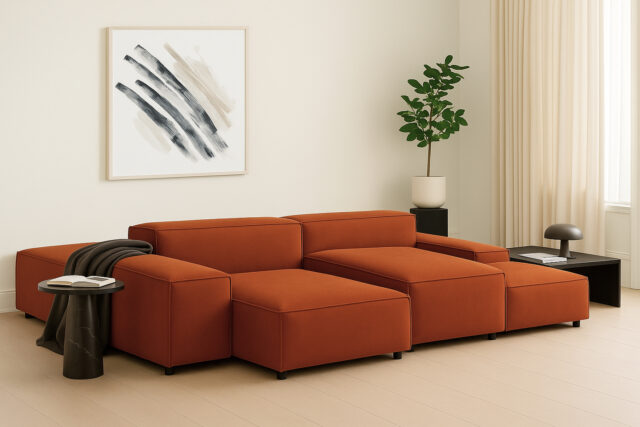 Extrasoft Sectional Sofa, Combination 1, Left, Burnt Orange Velvet